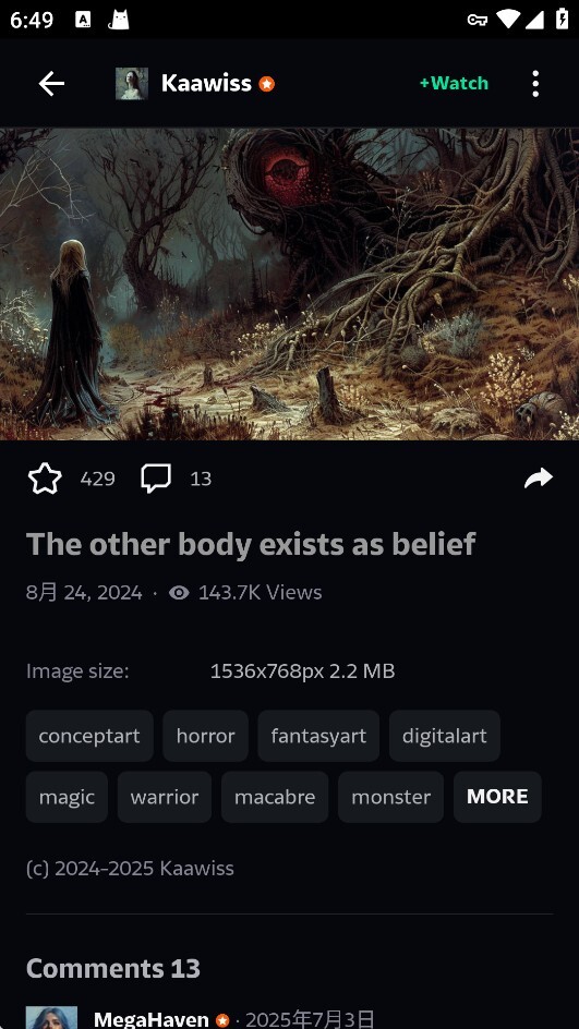 5、提交——在deviantart平台提交艺术创作、文学作品或发布状态更新,开启一场丰富的视觉交流。该提交功能兼容图片、视频、文档等多种文件格式,你可以为自己的作品配上详尽描述与标签,助力提升曝光度。平台审核团队会对内容质量进行把控,以维护社区的良好氛围。