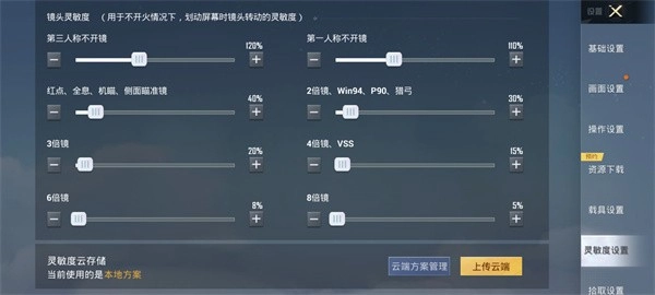 3. 基础镜头灵敏度设置:第三人称视角,未使用瞄准镜时,镜头灵敏度为120% ;第一人称视角,未使用瞄准镜时,灵敏度为110% 。红点、全息、机瞄以及侧面瞄准镜的灵敏度,应设定为40% 。2倍镜、Win94、P90和猎弓的灵敏度是30% ;3倍镜灵敏度为20% ;4倍镜和VSS的灵敏度为15% ;6倍镜灵敏度为8% ;8倍镜灵敏度为5% 。
