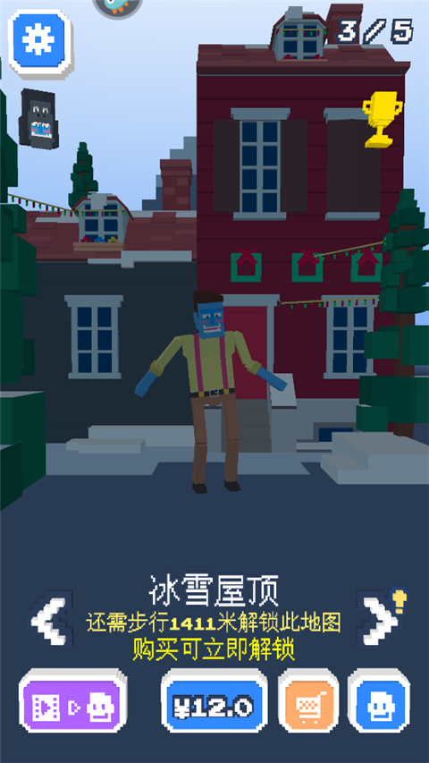 3、第三种模式为“雪山”(无尽头),需累计步行1500米方可解锁。在雪山地图的地板上增添了落雪,一旦踩到缝隙或者落雪,就会失败,极其考验左右脚的走动步伐,难度颇高。