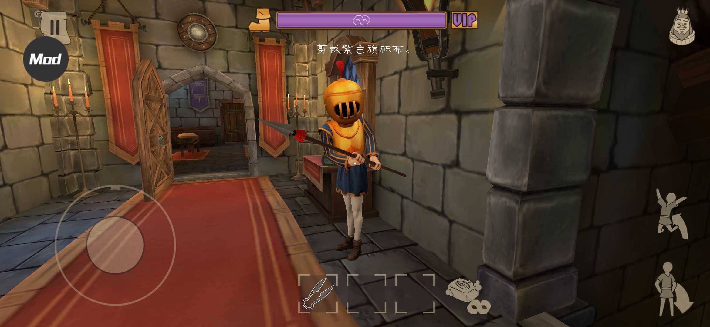 在前行的过程中需时刻留意。我们的理查德国王极为警觉,巧妙地躲开了他的视线,从而完成了更多解谜冒险!