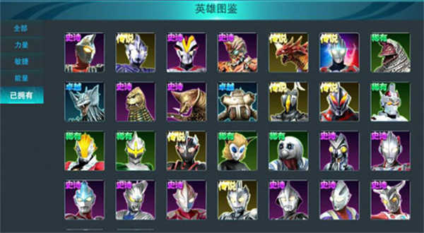 2、众多特色各异的奥特曼英雄供你随心挑选,尽情去熟练掌握每个英雄独特的技能。