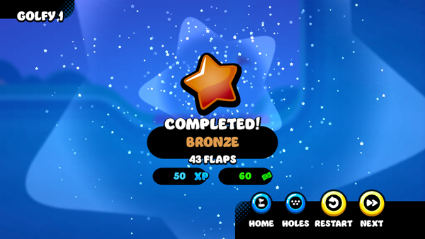 超级飞扬高尔夫手机版,英文名为Super Fly Golf ,是款相当出色的休闲飞行闯关游戏,它出自热门游戏《掘地求升》的厂商之手。在游戏里,玩家会化身为一只小鸟,依靠点击屏幕来操控其飞行,若能以最少的屏幕点击次数成功抵达球洞,就能获得更高分数。