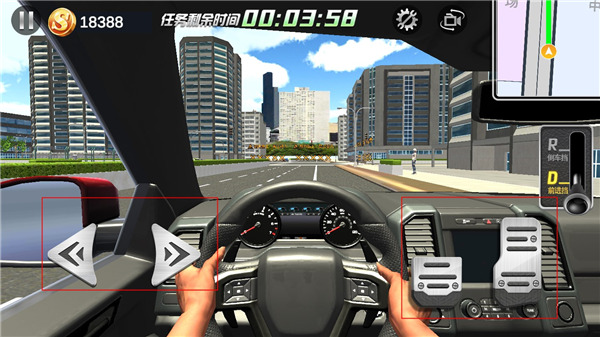 打开游戏后,能看到游戏里的车辆连油门和刹车都做到了真实还原,档位也参照了自动挡车型的设计,只有前进档和倒车档。要是想倒车,得先挂入倒车档,再踩下最右边的油门才行。