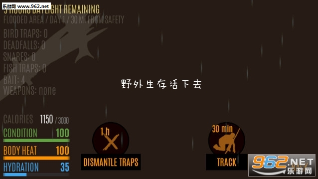 《野外生存:活下去》是一款野外生存模拟游戏。游戏中,玩家将流落荒野,需要努力在此生存下去,坚持到规定的救援时间。这片荒野环境原始,天气也十分恶劣,总是阴雨连绵,对玩家极不友好。在这里,所有生存所需的物资都得依靠玩家亲自收集,庇护所等设施也需亲手建造。你是否能坚持到救援到来的那一刻呢?