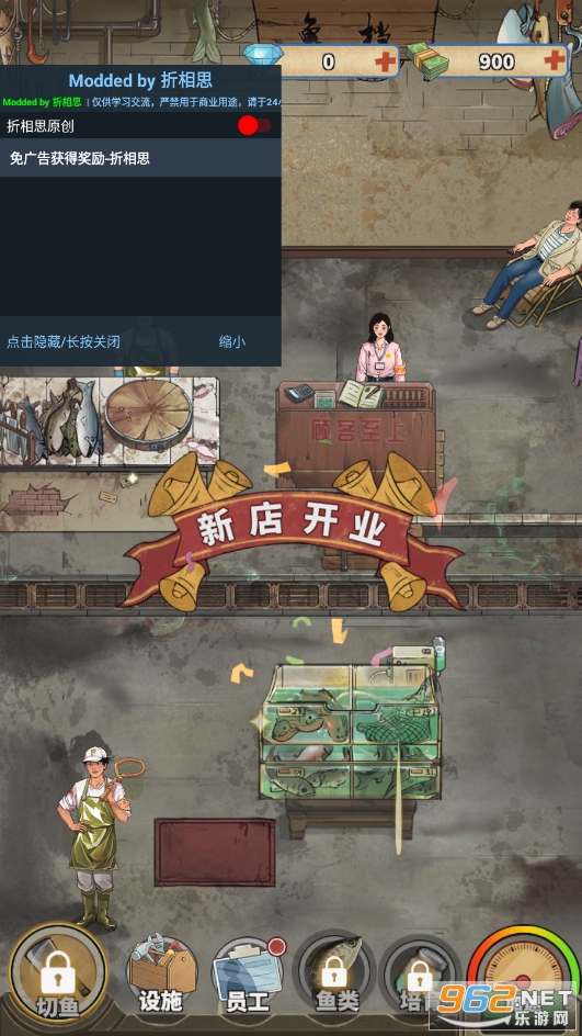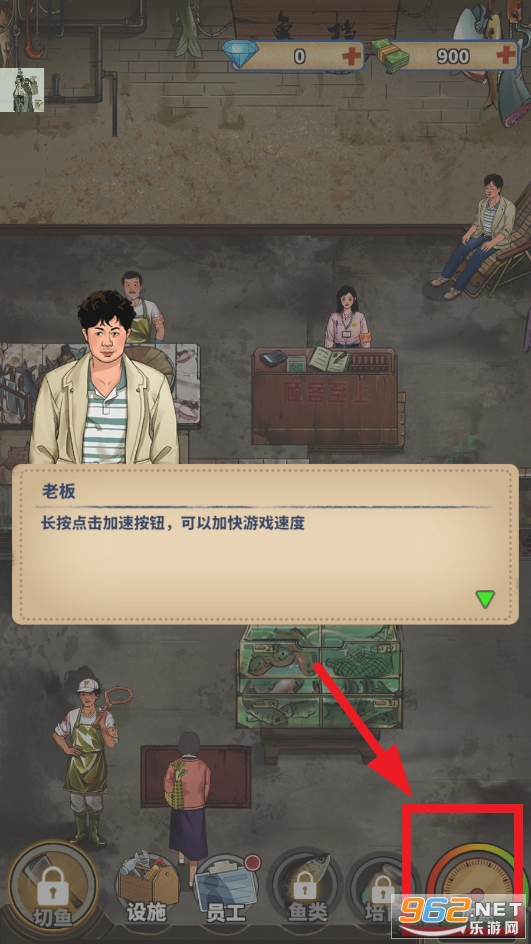 解锁收银员,切鱼工,捞鱼工,并不断升级