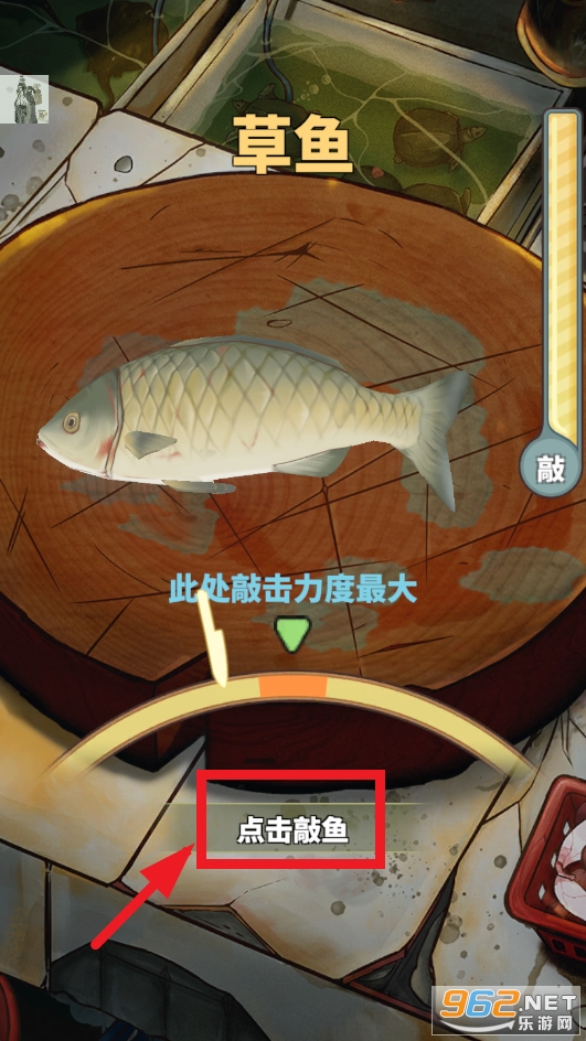 点击加速,快速为顾客捞鱼,杀鱼,结账