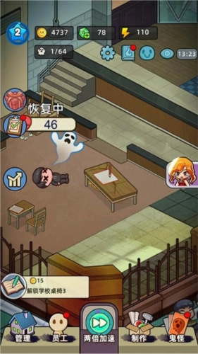 招聘员工:前往人才市场招募惊吓效果更强烈的猛鬼员工,以此提升鬼屋的惊吓指数。
