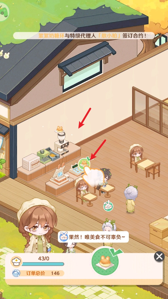 随后我们选择对应的设施进行制作,制作好之后点击客人即可送餐。