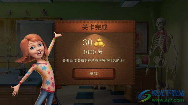 关卡完成后,点击弹出界面里的继续按钮,就能进入后续的游戏关卡。