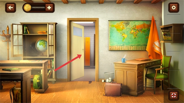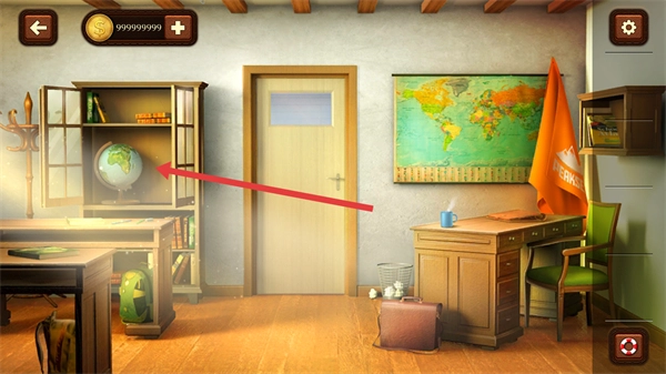 进入关卡后先观察房间布局,接着滑动书架上的地球仪,就能触发开门机制。