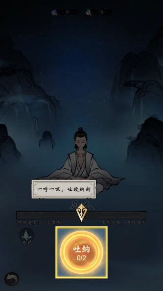 点击屏幕下方的洞府按钮,进入修行界面,吐纳修行。