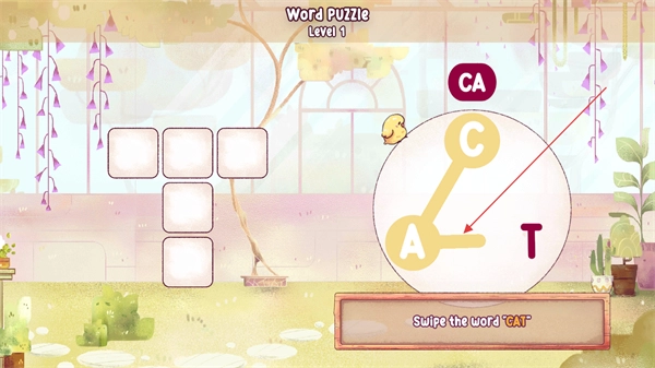 在游戏关卡里,依据提示滑动字母C、A、T,拼出单词CAT就能完成这一关卡的解谜任务。
