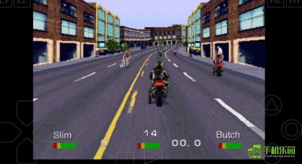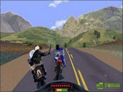 可以用拳头击打对方。当双方距离较近时,同样能以拳击将对手击退到一旁,若他的摩托车撞到建筑物,就会失去平衡倒地。此外,系统偶尔会提供木棍或铁鞭这类武器,不过在与对手激烈缠斗的过程中,手中的武器有可能会被对方夺走。