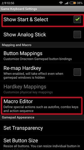 第二步:点击“Show Start&Select”并勾选该选项,接着点击下方的“Macro Editor”。