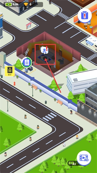 在场景里找到带有提示标识的【布景区域】,可以利用左侧的【提示】功能,快速找到需要进行操作的升级区域。