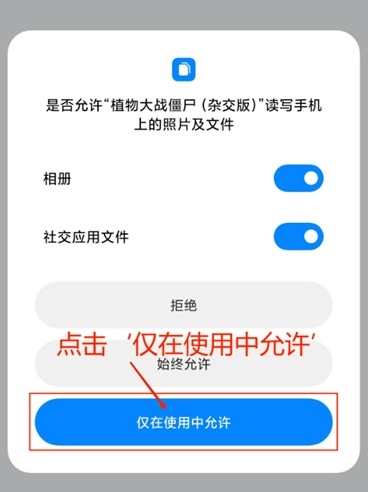 游戏启动需要给予相关权限,点击‘仅在使用中允许’