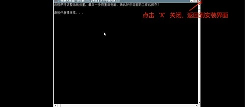 在完成安装后,点击窗口的【×】按钮回到安装界面;