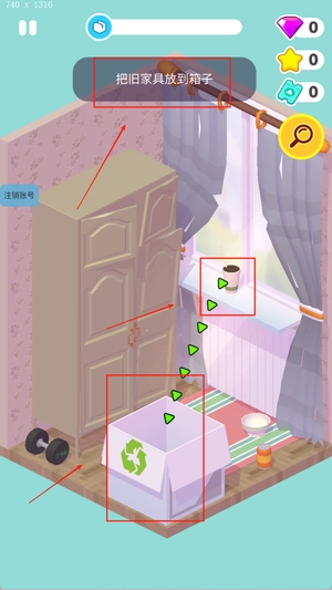 需要把物件整理收纳起来,界面顶部会显示当前的资金数额和任务进展情况。