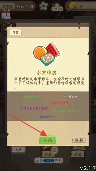 解锁货品后会弹出介绍弹窗,点击“关闭”按钮返回主界面,继续经营店铺。