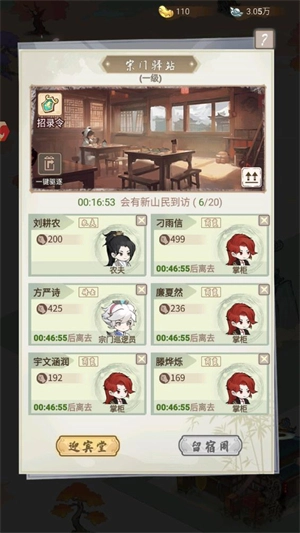 点击宗门驿站能够招募不同属性的弟子,不过招募后需要为弟子选择居所,他们才能正式加入宗门。