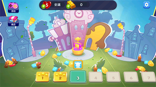 1、游戏的通关条件很简单,玩家能轻松上手,只要按照要求持续消除里面的糖果,就能顺利通关。
