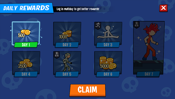 7、火柴人倒下后,可领取新一轮奖励并继续挑战。