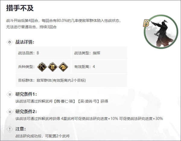 战法:步步为营+愈战愈勇;难测+侧击