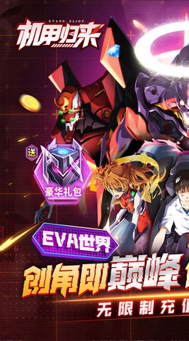 机甲归来是一款二次元横版动作游戏,以科幻动画《新世纪福音战士》(EVA)为背景改编而成。游戏在高度还原原作世界观与剧情的基础上,创新性地融合了策略卡牌与角色扮演玩法——玩家可招募包括明日香、绫波丽在内的经典角色,组建专属战斗小队,驾驶各式炫酷机甲迎战强大使徒,为守护人类未来踏上充满未知与挑战的征程。此外,游戏还为新手准备了丰厚福利:创建角色即可领取专属礼包,登录更能获得10倍代金券与SSR级机体,助力玩家快速沉浸于EVA的机甲世界,与伙伴们并肩拯救世界。