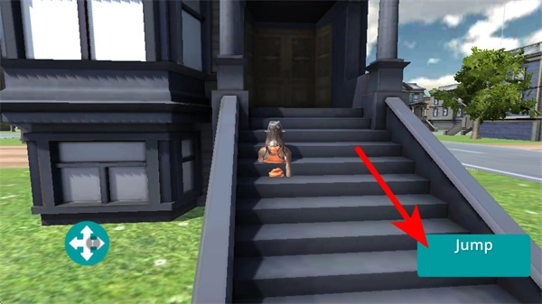 4、点击右侧的Jump按钮,操控角色跳跃上台阶,进入建筑区域完成该阶段的探索目标。