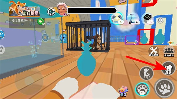 3、点击拾取按钮,收集场景里的花瓶等道具,以达成关卡任务的相应要求。