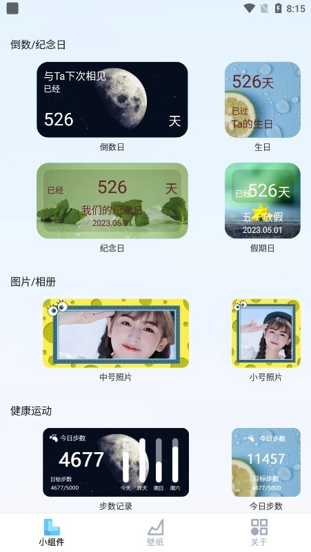 1. 小组件工具:涵盖倒数日工具(可提醒日程)、时钟组件等,具备多种显示样式。