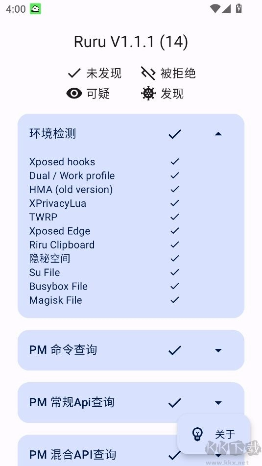 适用用户群体:追求极致简约,仅需基础Root检测功能的用户,以及对系统优化需求不高的场景下的用户。