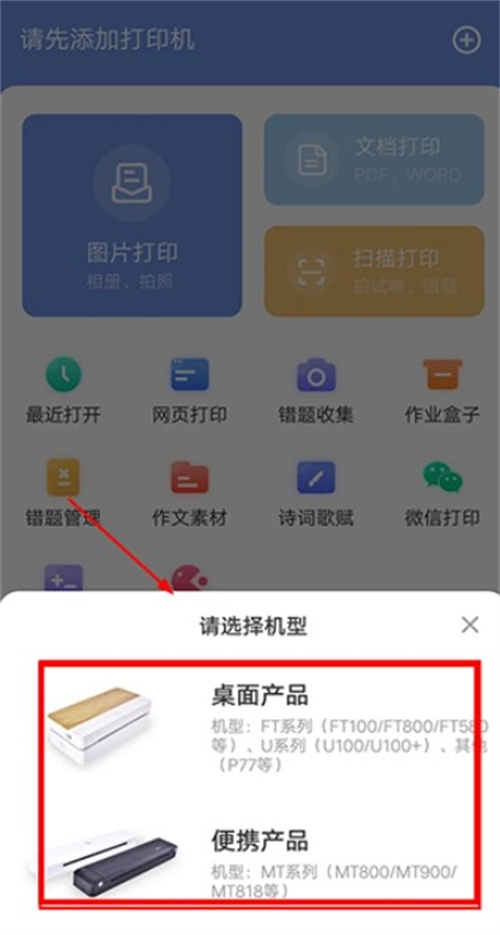 1. 开启汉小印,点击“+”来添加打印机。