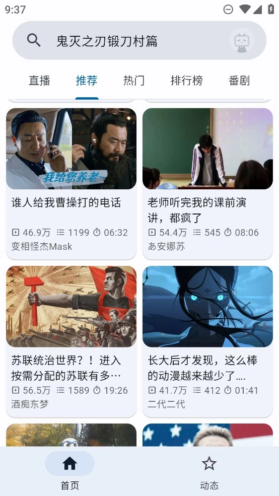 2、尽情观赏新番动漫视频资源,精彩直播刷到停不下来,首页推荐内容丰富多样。