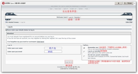 2. 登录论坛界面,操作如下所示。