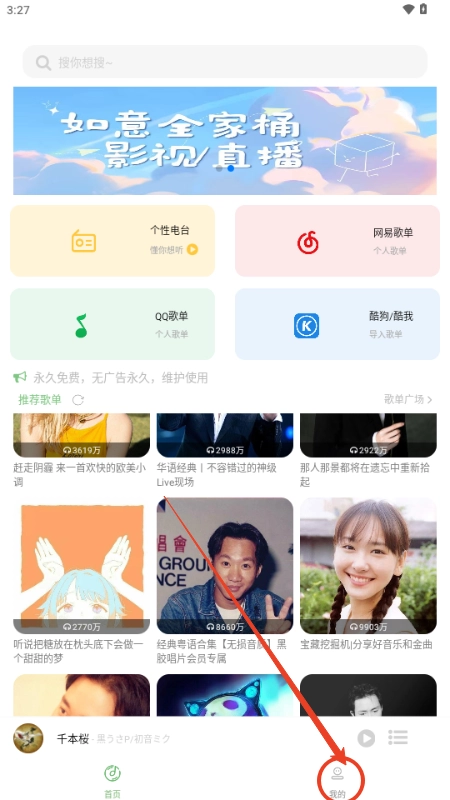 1. 进入如意音乐的首页,然后点击右下角的“我的”选项。