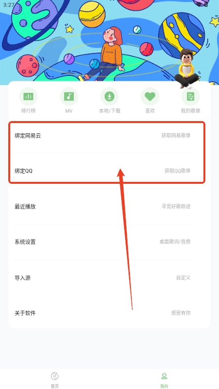 2. 在账户设置里查找并点击“绑定网易云”或者“绑定QQ音乐”按钮。