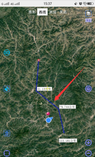 6、图形框选、画线测距与测绘操作不做区分,工作完成后,长按屏幕即可保存工作成果。