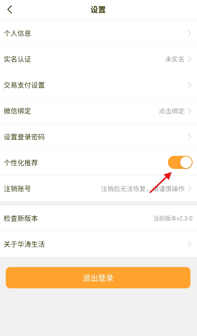3、在设置页面里找寻到 “个性化推荐” 这一功能项,点击它右侧的开关,即可顺利关闭该功能。