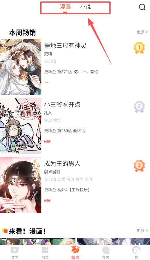 1、可以先从首页的精选页面开始浏览,这里能看到本周畅销以及编辑推荐的作品,直接点击就能进入阅读界面,要是碰到喜欢的作品,记得把它加入书架哦。