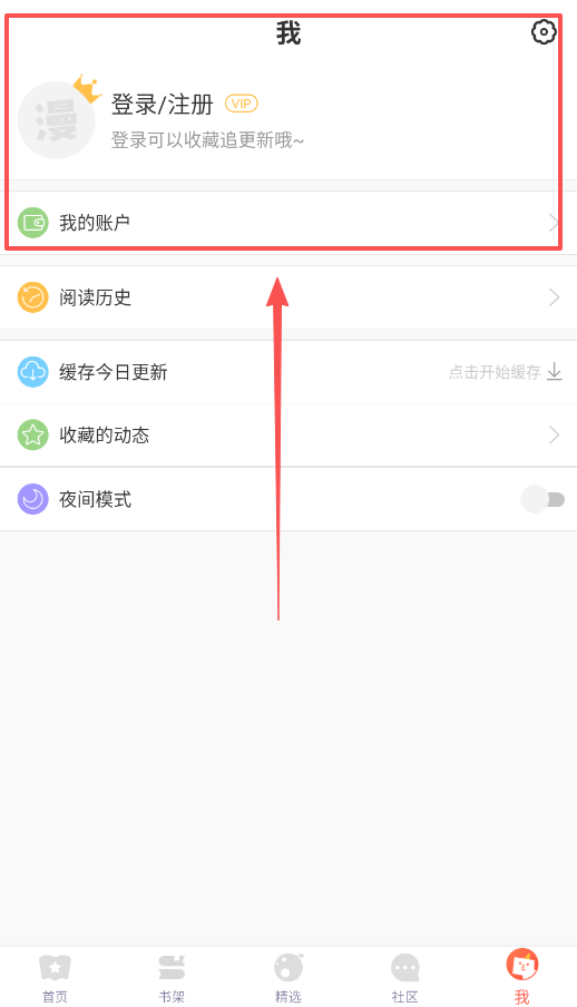 4、最后别忘了点击“我”的页面完成登录或注册操作,只有登录之后,你的书架收藏内容和阅读记录才能被妥善保存。