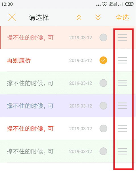 在便签首页长按任意一条便签,就能进入编辑状态,此时拖动右侧的图标上下移动,即可完成便签的排序调整。