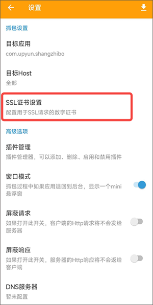 1. 我们需要打开黄鸟抓包,进入设置界面。