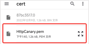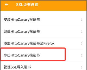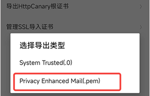 3. 点击“导出HttpCanary根证书”选项,并选择.pem格式进行导出。