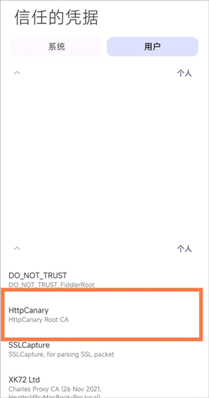 7. 证书安装成功后,可前往“设置-安全-更多安全设置-受信任的用户凭证-用户”路径下,查看已完成安装的证书。