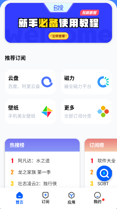 在软件的首页,用户能够看到新手必备教程、推荐订阅源以及搜索热榜这些内容。