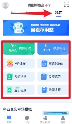 1、 提供科目一到科目四的全真题库练习:保证学员所学内容和考试要求高度契合。