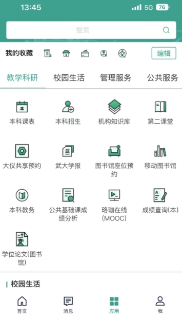 “智慧珞珈”整合了“教学科研、管理服务、公共资源”三大核心板块,涵盖40余个应用程序,此外还汇聚了图书、期刊、论文、专利以及教学视频等各类优质学习资源。