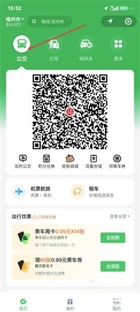 1、点击首页的公交图标,就能调出乘车码,此乘车码可用于公交和地铁的扫码支付;首页下方整合了实时公交、积分兑换等实用功能;在出行优惠区域,用户还能抢购低价周卡、领取乘车券,从而减轻日常通勤的成本压力。