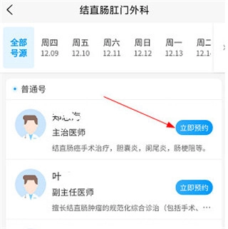 4、找到想预约的日期与医生,点击“立即预约”按钮就可以了。
